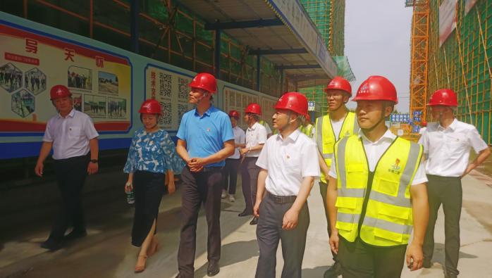 隨后,孫亮一行來到項目部,與項目管理人員就開展主題教育、企業如何做好輿情管控、下一步深化建工集團及建工二建與安徽廣播電視臺共建等進行了深入交流。葛輝詳細介紹了安徽建工集團概況,建企歷史、建工二建改革發展情況等,并就黨建與業務工作的深度融合進行了交流,他指出要深入學習貫徹習近平新時代中國特色社會主義思想主題教育,強化理論學習,做到以學鑄魂、以學增智、以學正風、以學促干。孫亮說:“今天與建工二建開展黨建活動十分有意義,我看到了‘支部建在項目上’和黨員發揮先鋒模范作用的良好效果”。他對項目工程質量、黨建工作發揮作用等給予了高度肯定,贊許了項目一線施工人員踔厲奮發的精神面貌。姚程表示,在這個特別的日子與建工二建開展黨建共建非常榮幸,對在高溫天氣下依然堅守崗位,奮戰在一線的勞動者表達敬意。她說:“要努力踐行共產黨員的使命擔當,弘揚勞模精神、勞動精神、工匠精神,扎實做好本職工作”。