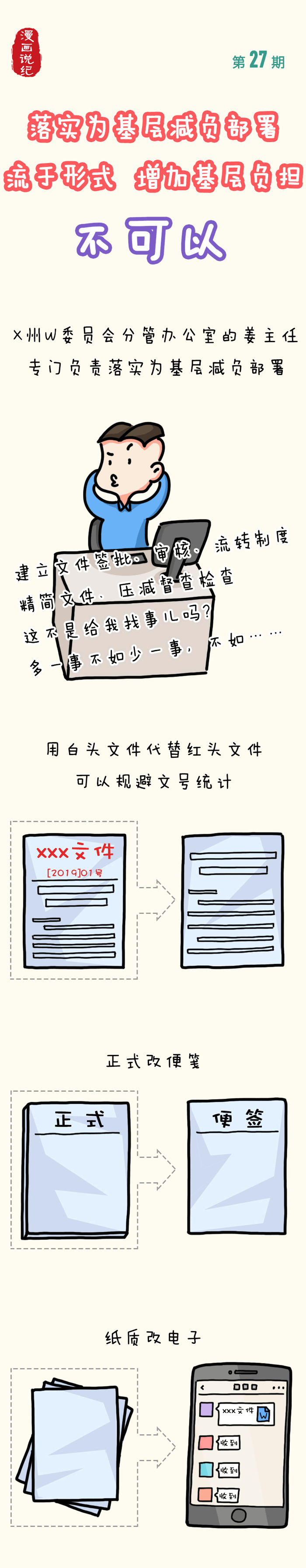 漫畫說(shuō)紀(jì)丨落實(shí)為基層減負(fù)部署流于形式 增加基層負(fù)擔(dān) 不可以