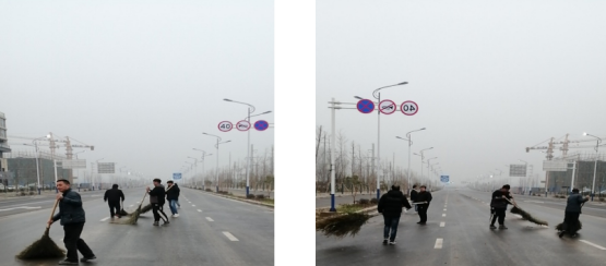 3月19日,二分公司琨宇悅湖城項目部與城管部門聯系主動承擔清掃陳集路和廬陽大道路面衛生,項目管理人員在項目經理姚鵬的帶領下,拿起掃把垃圾桶,清理下雨后路面留下的落葉及垃圾,大家干勁十足,落葉及垃圾很快得到清理,得到了城管部門的認可。
