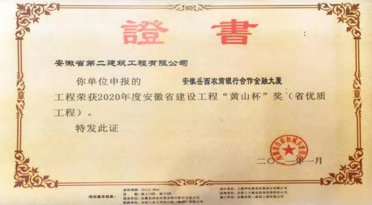 近日,由安徽二建一分公司承建的岳西農(nóng)商銀行合作金融大廈工程通過安徽省住房和城鄉(xiāng)建設(shè)廳專家驗(yàn)收,獲得2020年度安徽省建設(shè)工程“黃山杯”獎(jiǎng)。