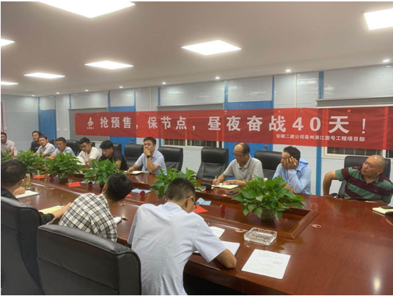 2020年8月21日開工,項目部管理團隊組建完成,進入搶工狀態(tài)。根據(jù)建設(shè)單位要求的預(yù)售節(jié)點,項目部組織班組開展大干40天,制定高效生產(chǎn)計劃,晝夜不停搶工期。