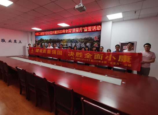 9月3日下午,為積極響應國家市場監(jiān)管總局、國務院國資委、住建部、交通部等16個部門《關于開展2020年全國“質量月”活動的通知》精神,結合公司“建設質量強國 決勝全面小康”活動主題。六分公司開展了2020年“質量月”宣誓簽名活動,技術質量科負責人帶領大家進行宣誓,之后在橫幅簽名。