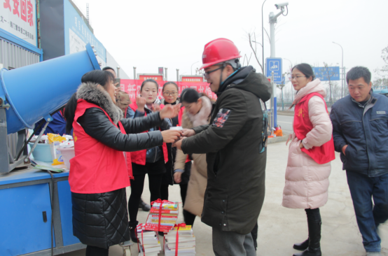 活動(dòng)現(xiàn)場(chǎng),項(xiàng)目部成員與志愿者們?cè)阱\門·繁華里工地門口支起愛心粥鋪,把一碗碗香暖四溢的臘八粥送到每一位民工手上,讓大家能夠在寒冷的冬季感受到社會(huì)的溫暖,體會(huì)到了社會(huì)各界對(duì)民工朋友們的關(guān)愛,送粥的同時(shí),志愿者們還給民工朋友們送上各類書籍,讓民工朋友們也享受到閱讀的樂趣。
