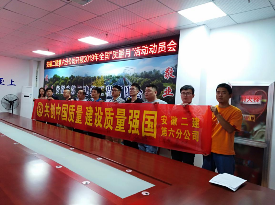 為認(rèn)真落實(shí)安徽建工集團(tuán)股份有限公司關(guān)于開(kāi)展2019年“質(zhì)量月”活動(dòng)的通知,9月3日,第六分公司召開(kāi)2019年“質(zhì)量月”活動(dòng)專題會(huì)進(jìn)行宣貫,組織職工進(jìn)行橫幅簽名活動(dòng),以“共創(chuàng)中國(guó)質(zhì)量 建設(shè)質(zhì)量強(qiáng)國(guó)”為主題,大力營(yíng)造“人人重視高質(zhì)量,人人創(chuàng)造高質(zhì)量,人人享受高質(zhì)量”的良好氛圍,進(jìn)一步規(guī)范質(zhì)量安全行為,提高質(zhì)量安全管理水平,全面提升項(xiàng)目管理水平,要求項(xiàng)目部按照“質(zhì)量月”活動(dòng)內(nèi)容,結(jié)合項(xiàng)目實(shí)際,精心安排、周密部署,以“質(zhì)量月”活動(dòng)為契機(jī),加大項(xiàng)目質(zhì)量宣傳力度,進(jìn)一步提高全員質(zhì)量意識(shí),開(kāi)展質(zhì)量示范創(chuàng)建,創(chuàng)建公司質(zhì)量品牌,牢固樹(shù)立全心全意為用戶提供優(yōu)質(zhì)服務(wù)的安徽建工一流企業(yè)現(xiàn)象。