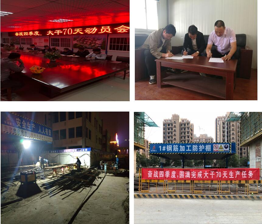 參賽項目已全面進(jìn)入競賽狀態(tài),宣傳橫幅隨處可見,大干氛圍濃厚。分公司要求各項目部在保證質(zhì)量、安全的前提下,加班加點,克服困難,為實現(xiàn)“大干七十天”達(dá)到預(yù)定目標(biāo)而不斷努力!