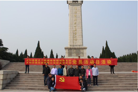 紅色之旅途中,太和安建投資有限公司聯(lián)合黨支部書記高偉發(fā)起了黨員和入黨積極分子共同參與的組織生活會,從思想、黨性認識上對黨員和入黨積極分子進行了重大洗禮。太和縣委辦副主任、太和縣重點局苗玉勇給本次活動致辭,并給紀念碑獻花藍,接著薄局帶領(lǐng)我們重溫入黨誓詞,積極學習黨的歷史、黨的知識。