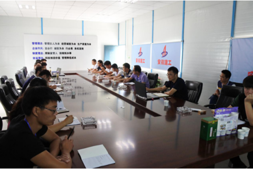 葉和永一行參觀了安建·楓林源筑Ⅱ標段項目部辦公區、生活區,檢查了施工現場,詳細詢問了項目生產情況和職工生活、學習等情況。項目負責人潘澤強對工程概況、項目組織體系、前期工作和下一步工作計劃進行了匯報。公司相關部門結合項目實際分別就“三位一體項目管控體系”、“七化”管理、公司相關規章制度、工作流程、工作要求等內容對項目部全體管理人員進行了系統交底;與會人員還就項目策劃工作進行交流討論,對項目主要管理目標、現場平面設計、資源配置方案、項目組織機構等內容進行充分討論并提出意見建議。