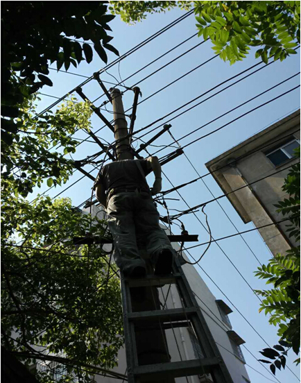 7月23日,原二公司生活基地由于供電線路嚴重老化,發(fā)生線路著火斷電事故,后勤綜合服務部接到險情報告后,立即組織搶修隊伍奔赴現(xiàn)場,維修人員不懼高溫酷暑,頂著烈日,經(jīng)過幾個小時的高空作業(yè),及時恢復了供電。