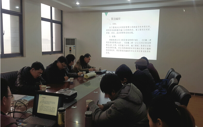會議主要通過ppt形式就策劃編審、施組、方案編審、項目技術(shù)質(zhì)量考核、新開工項目告知等內(nèi)容進(jìn)行解讀,集中學(xué)習(xí)了公司及分公司項目管理、質(zhì)量控制、重難點攻關(guān)、冬季施工等相關(guān)文件。