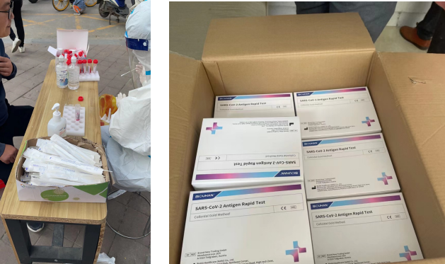 “您好,今天的抗原檢測開始了。”她一邊發放試劑盒,一邊叮囑居民相關注意事項,這個是她今天的主要工作,從早上6點多和晚上8點開始,獨自承擔了兩棟樓的抗原試劑發放和回收工作,挨家挨戶敲響了住戶的家門,面對個別住戶說打擾了他們睡眠的些許抱怨,她始終面帶著微笑,耐心解釋和等待著。就這樣一家一戶的發放和最終收集檢測的試劑,晚上將近11點,她才結束了一天的志愿服務工作。